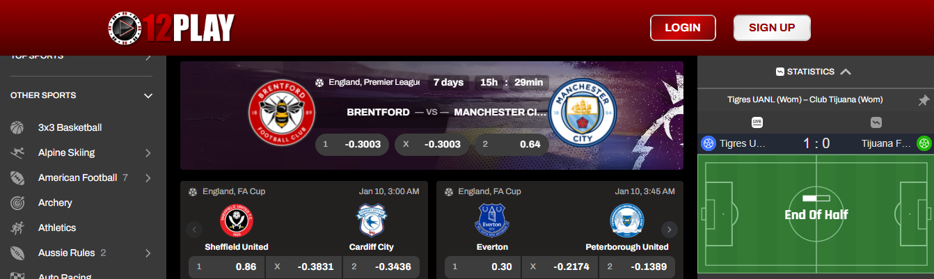 12Play is known for having one of the biggest sportsbooks and very generous VIP rewards. It offers over 50 sports, from the mainstream to the most obscure ones.
