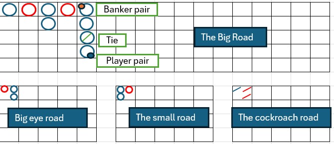 Ever wondered how certain players are able to thrive in this game of chance? In Baccarat, "roads" are visual scoreboards that show the results of prior hands so that players can see trends and patterns as the game progresses.